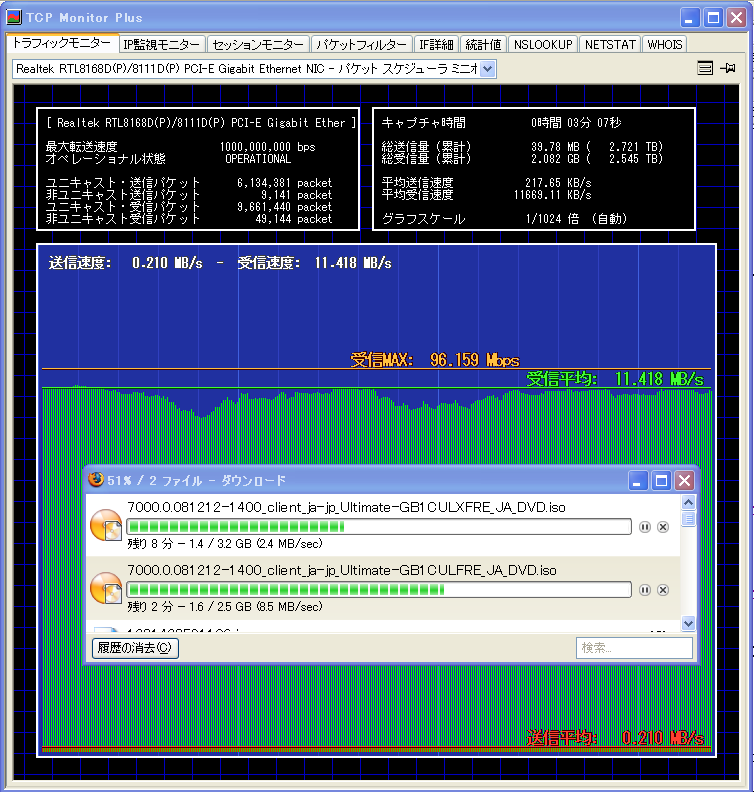 前回落としたときも凄かったけど、ファイルダウンロードの実測で96Mbps出てしまうとはw なんたる底力w