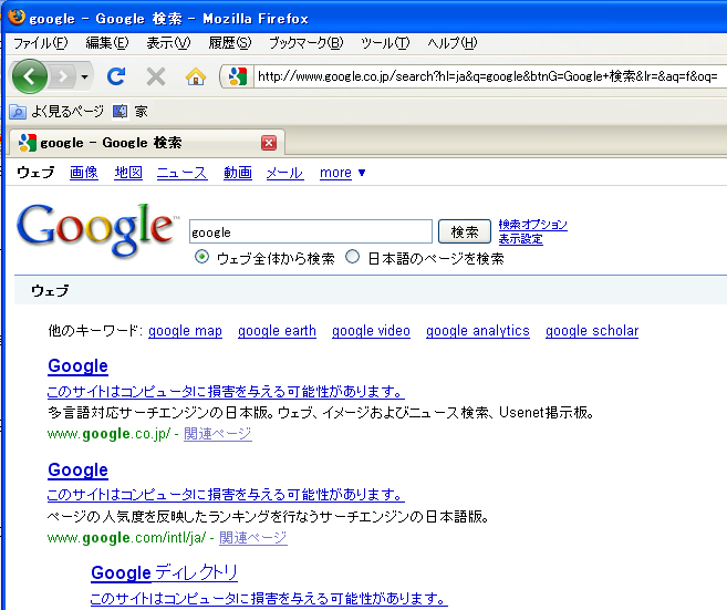 何を調べても『このサイトはコンピューターに損害を与える可能性があります。』