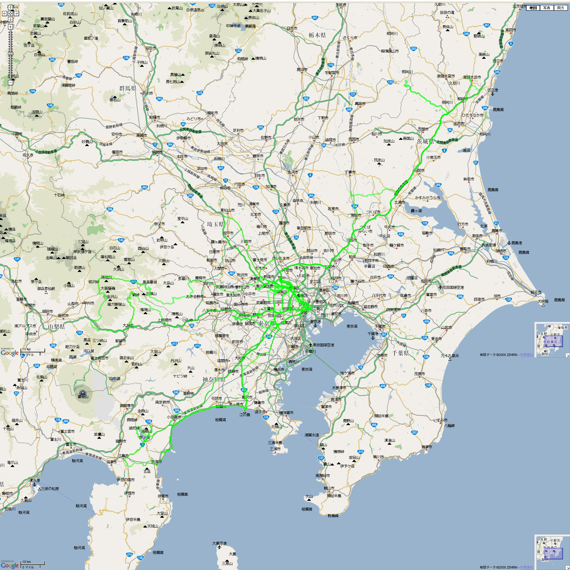 でも、いままで走ったログ(鴻巣やら首都高)が消えとる。