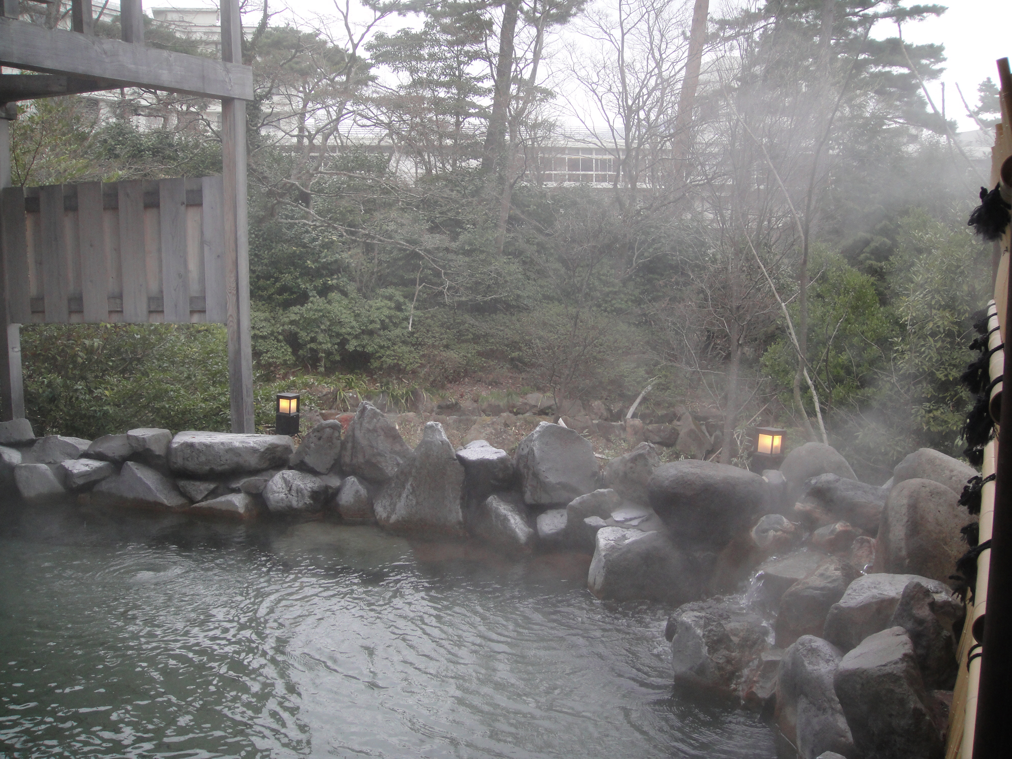 ホテルの大浴場が09時から(泊り客以外)だったので、少しだけレストランで時間つぶして露天風呂へゴー(>_<)ノw (朝早くから、クソ寒いのを耐えて出発し、めちゃ寒風にさらされてカラダ冷え切ってるのを想定してのプランですw) もう、今日は小涌園ホテルの露天風呂めざして、猫まっしぐらですw っていうかね、小涌園近辺とか、雪降ってましたよ雪!!!(T-T) マジ寒いちゅんの(T-T) 道路にまだ雪が残ってたしね……… これはホントに想定外。まー風呂が気持ちよかったけどサ(T-T); ちなみにバイクは前回と同じ場所があいていたので、宿泊客専用とかかれていたのを無視してそこにおいちゃってから フロントへ行って、『前泊まったときと同じ場所にとめてきちゃったんだけど、いいよね?(はぁと』したらば、 快く了解してくれました。ありがとう(>_<)ノ だから普通の値段のホテルは好きだ。激安宿だとこうはいかない。 話それたけどw小涌園の温泉プールがあるのに、わざわざホテルの大浴場に来てる奴もいないだろうと思ってたけど まさにビンゴで、パラパラと人のではいりはあるものの、ほぼ貸切といってもいい状態(無人状態が長いw)にwww お風呂の記念写真撮れちゃうくらいガラガラなのは嬉しかったw なっぱたんならこの状況がどんな事態であったかがよーくわかるかと(>_<)