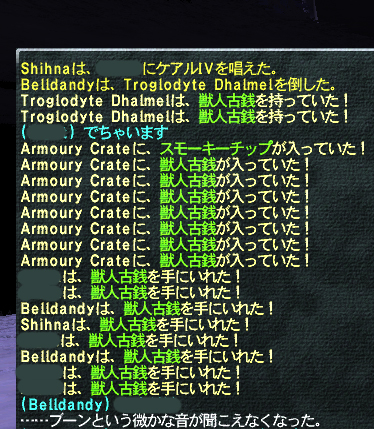投稿日: 2009/05/02/ 01:24:30 投稿者: にゃんこアポリオンNE 中の人2人の豪快強行プラン2日目(>_<)ノ 残り時間1分になるみたいなあぶないツアーでしたが、連続魔スリプガまで飛び出す神進行で無事クリア(>_<) 何度行けばあんな戦略思いつくんだか………おそろしや(>_<) 素材ドロップなしでしたが、まぁいいのです(>_<) おみやげは古銭12枚(>_<)ノ