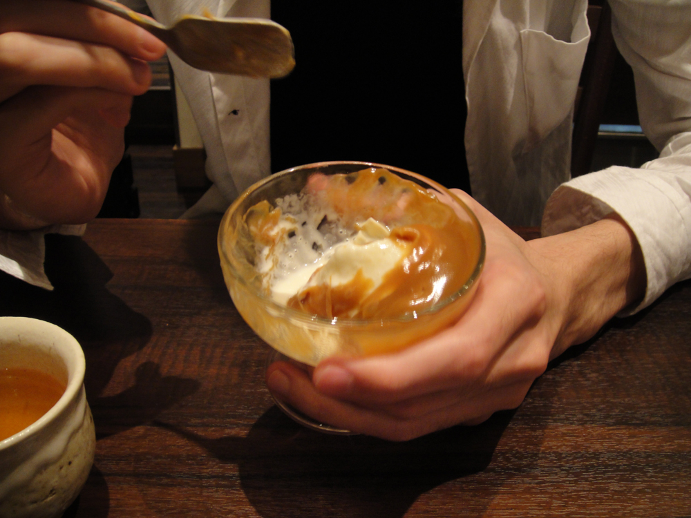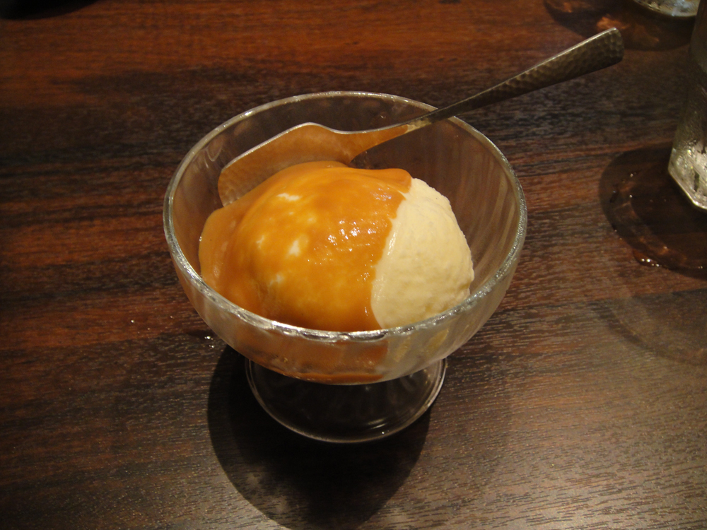 食後のデザートが、バニラアイス&キャラメルクリームがけなんですが、ここでもるし様が暴走というか………