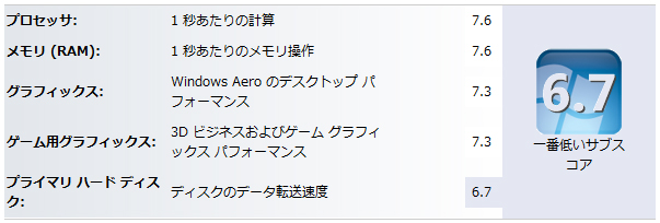 これでプライマリハードディスク5.9でその上全部が7.3でした。
