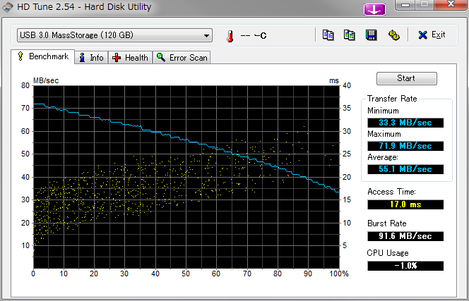 HD Tuneの波形がどーもおかしい………まぁeSATA接続よりは全然速いので満足ですが。