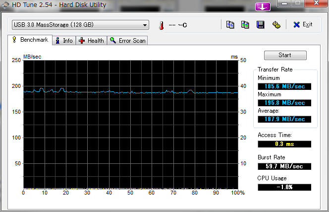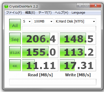 前回と同じシステムでUSB3.0接続してみた結果がこちら。