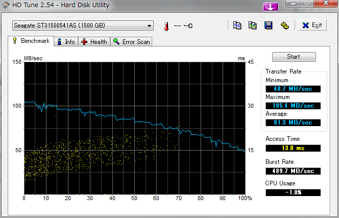 Barracuda LP (5900rpm,3Gb/s)にしてはいいスコアです。 バーストレートがなんか凄い事にw