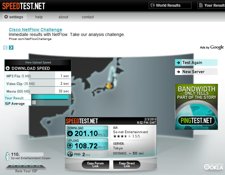 ルータ経由じゃBフレッツネクストでもたいして速くなってないのが確認出来たので