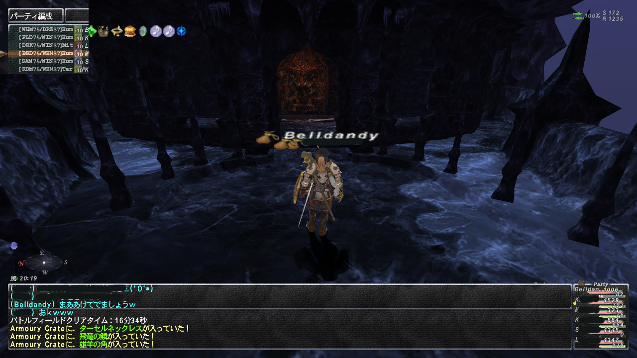 編成はエクスイージスっぽいナイト、村雲、暗、白、赤、詩。