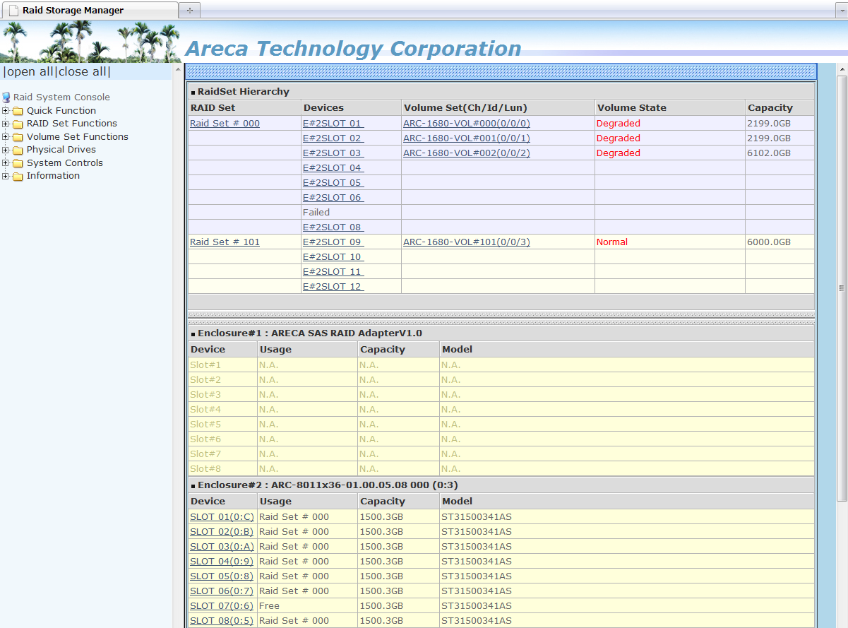 Diskが2つ故障していてどこかでfailedが発生したのなら、全てのボリュームセットがfailedになるはずなのに、どうして部分的に吹き飛んだのか?;;