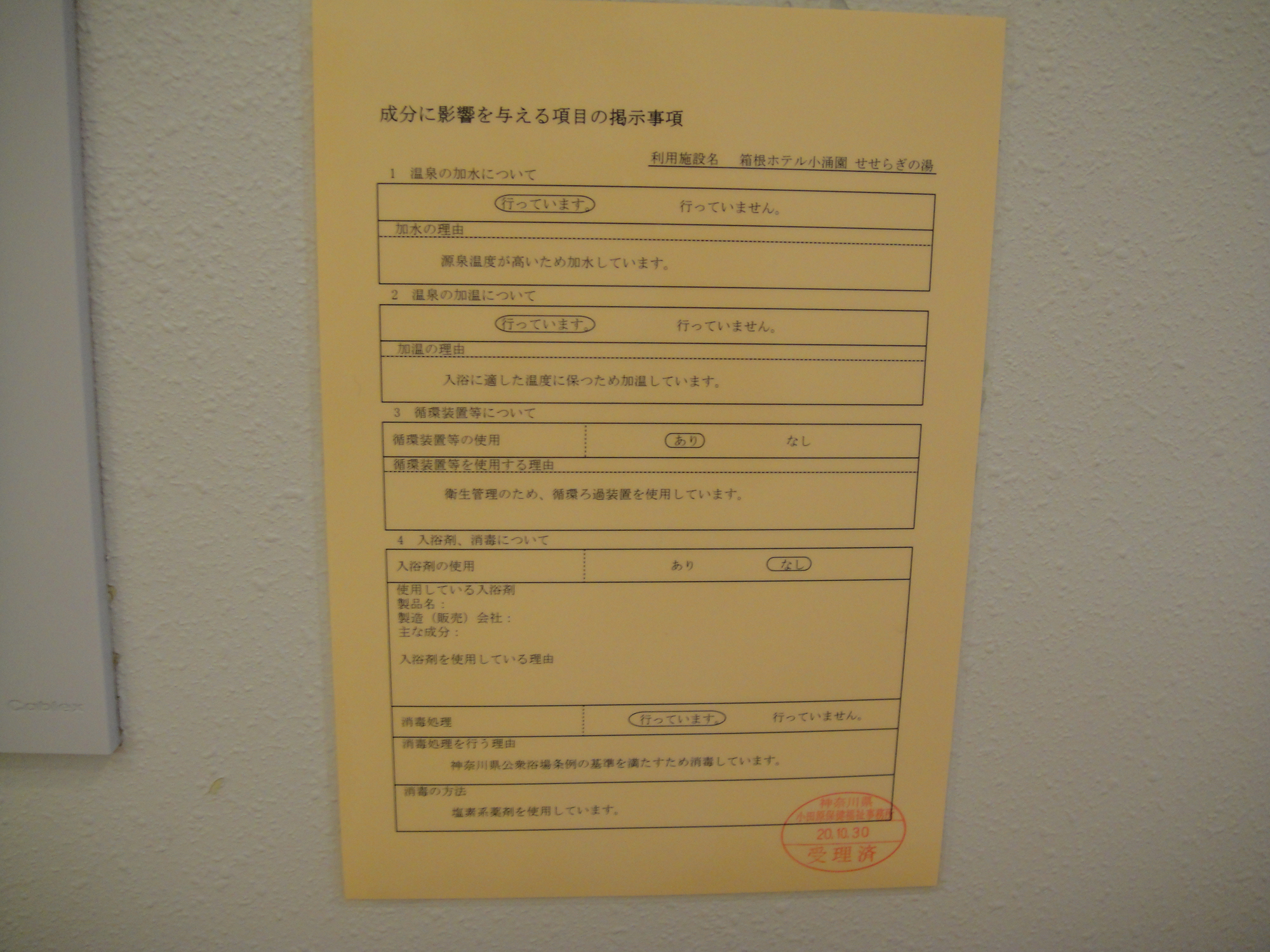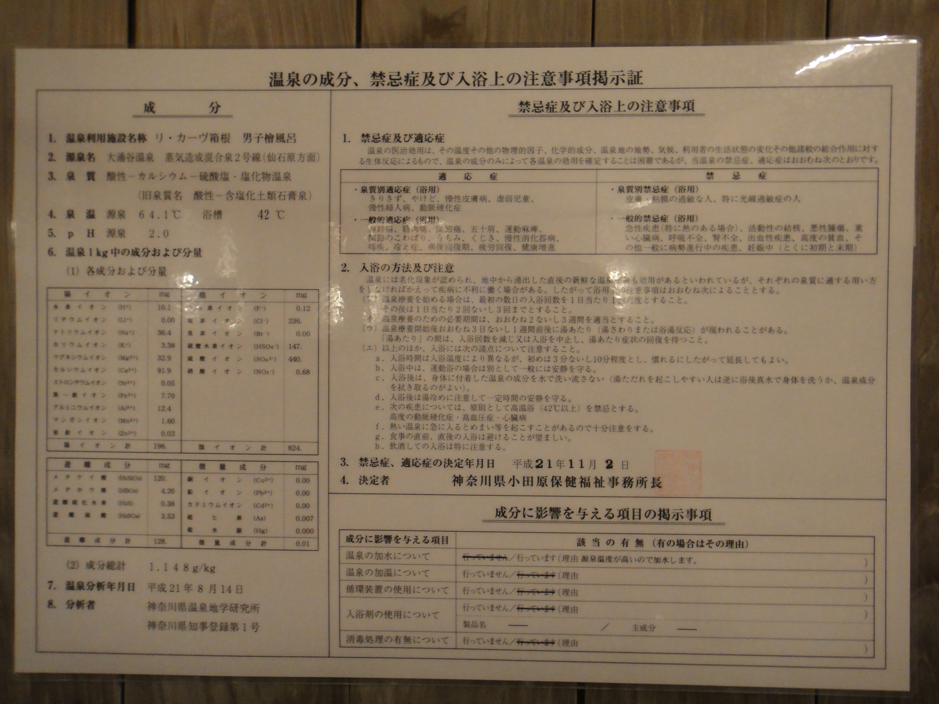 参考までに、某小涌園ホテルの成分表。仙石原圧勝でした本当にありがt(r