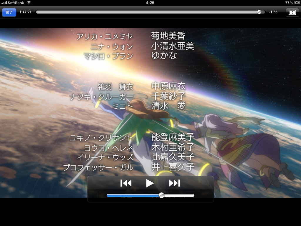 今現在一番のお気に入り変換ソフト(>_<)ノ 主にBDをリッピング後、h264形式のmp4ファイルを作らんといろんなソフトを試してきましたが どれも一長一短というか問題出まくりのトラブル続きで、なんとかここらで一発マトモな変換ソフトが欲しいな~って探しまくってたとこです。 iPadのファイル形式がイマイチ判らなくて、ソフトによっては単にビットレートを2.5Mbps以下にしただけでは転送すら出来なかったりして。 んが、HandBrakeというソフトを利用すると4Mbpsの綺麗な動画でもちゃんと転送出来てウマーってカンジ?(>_<) もうひたすら2passで変換しまくってる訳ですが、時間がかかるかかる.........w メインとセカンドの2台で激しくエンコ中ですがいっこうに終わる気配がありませぬ(>_<) エヴァ序、エヴァ破、時かけ、サマーウォーズ、舞himeツヴァイコンプリート、シフルコンプリート、カリオストロの城、余裕あったら攻殻も行くか.........(>_<) 64GBモデルでも入りきらないかなこれは。 コードギアスのラスト2話くらいも入れておきたいし(>_<)