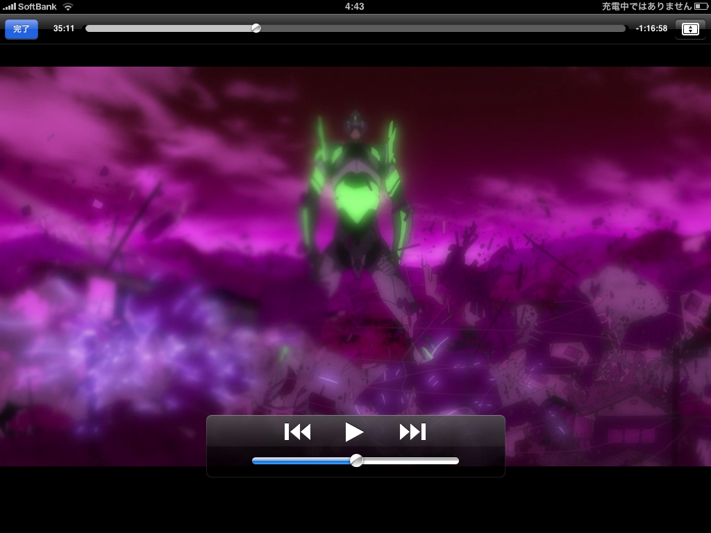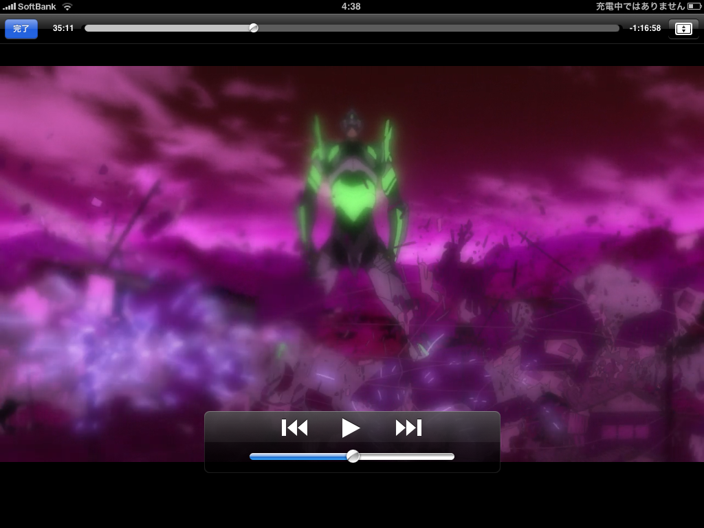 どーせならiPad専用ってことで、画角をiPadの横サイズ最大に併せてビットレートをあげまくってやろう、って事で試しにエヴァ破なぞ作り直し(>_<) 上が1280x720 4Mbps 2pass BDベースで作ったファイルをiPadで再生したもの、 下が1024x576 14Mbps 2pass BDベースの以下略。 どー見ても下の方が綺麗ですorz 当然といえば当然ですが。 ってことで、ほぼすべて作り直しっっっっっっっっっっw 今までの数十時間がパーに(>_<);;;; ちなみに一番使い勝手がいい変換ソフトはXMediaRecodeでした。フリーでここまで性能がいいのは凄い。