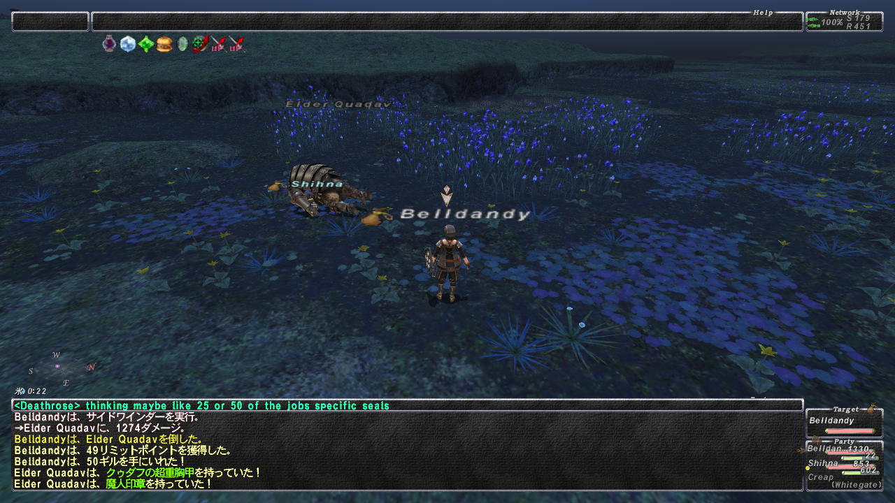 からんできた Elder Quadav を倒したら運良くドロップ。Creap急いでテレポさせて取らせれば佳かったな~、と、ロット確定させた数秒後に後悔orz