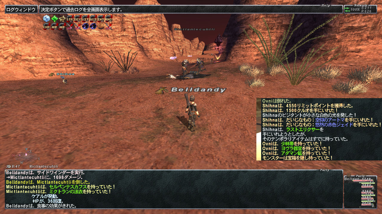 セルペンテスカフスのNMも行って、これも1発ツモ。手は白でついてくる事が多い倉庫キャラのしぃなに先に。 今日はしぃな運良すぎw