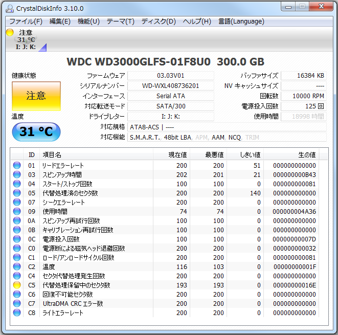 壊れたhddは、買ってからすぐに片方が壊れた曰く付きの逸品、忌み嫌うウェスタンデジタルのWD3000GLFS。