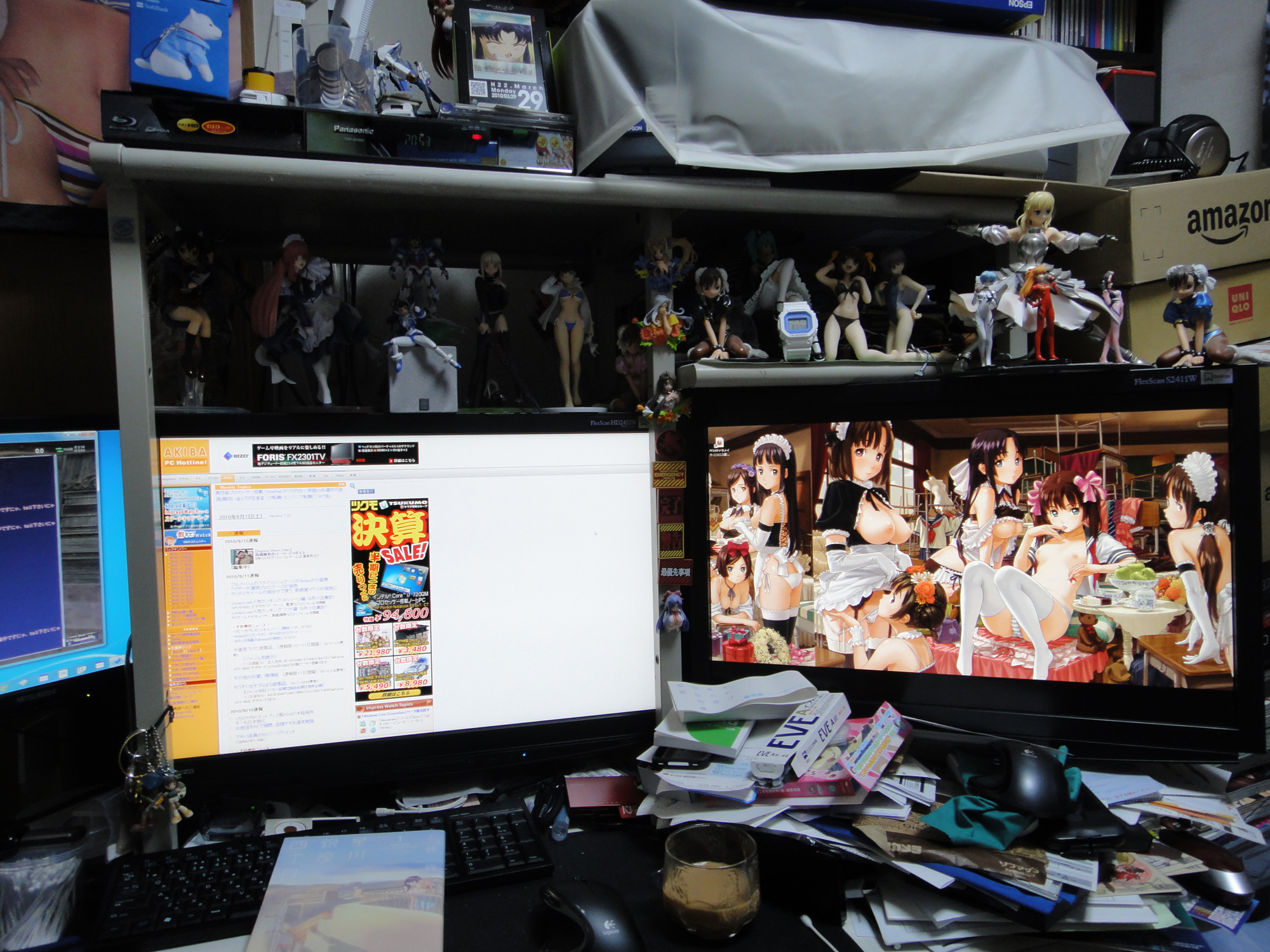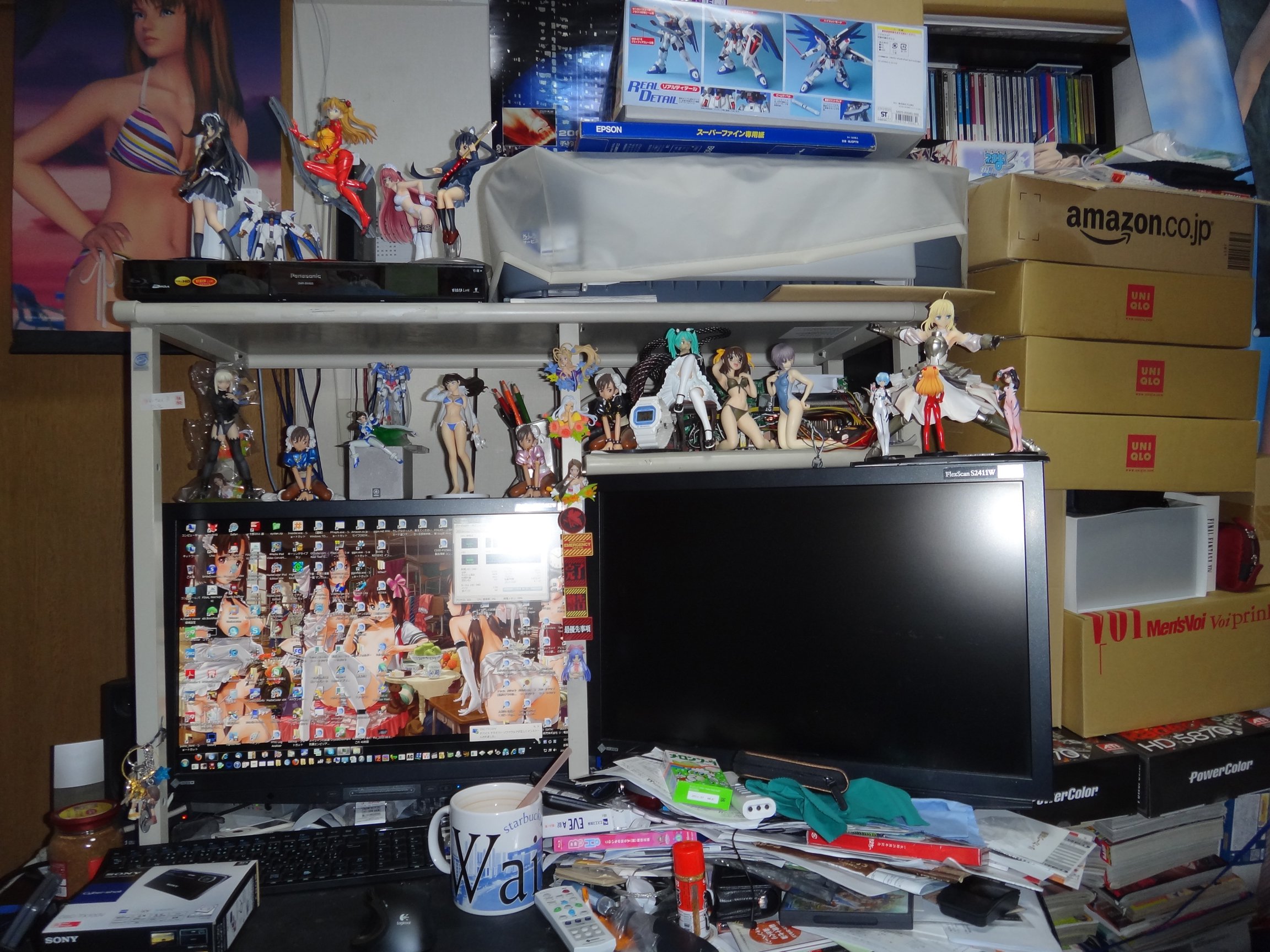 とりあえずお約束的にモニタ方面をパチリ。去年8/12の風景とほぼ変わらない卓上がヤバイwww