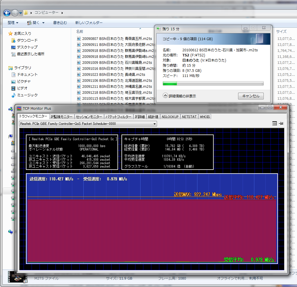 110MB/sはりつきで一直線、すげー綺麗な転送状況でワラタw