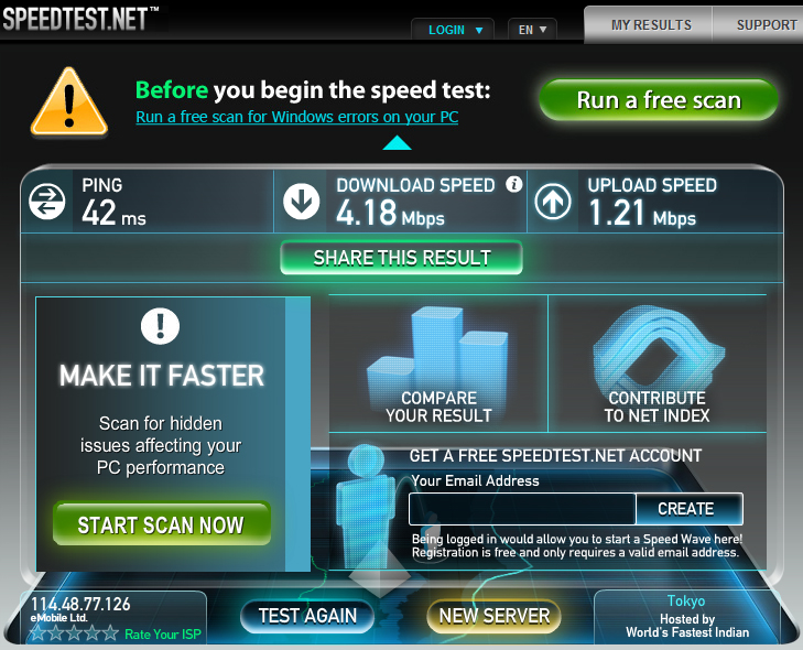 どうやらウチの室内からは、42Mbpsの高速モードを活かせないようですorz 【残心】