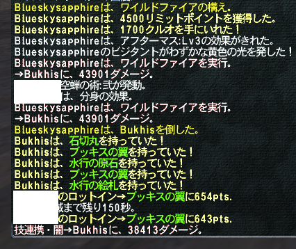 魔攻アートマ揃ってないのと、ウィザードロールで11が出せなかったのと、テンポラリ使い忘れたのとで色々とぬかってるけどそれでも2発でブッキス即死w