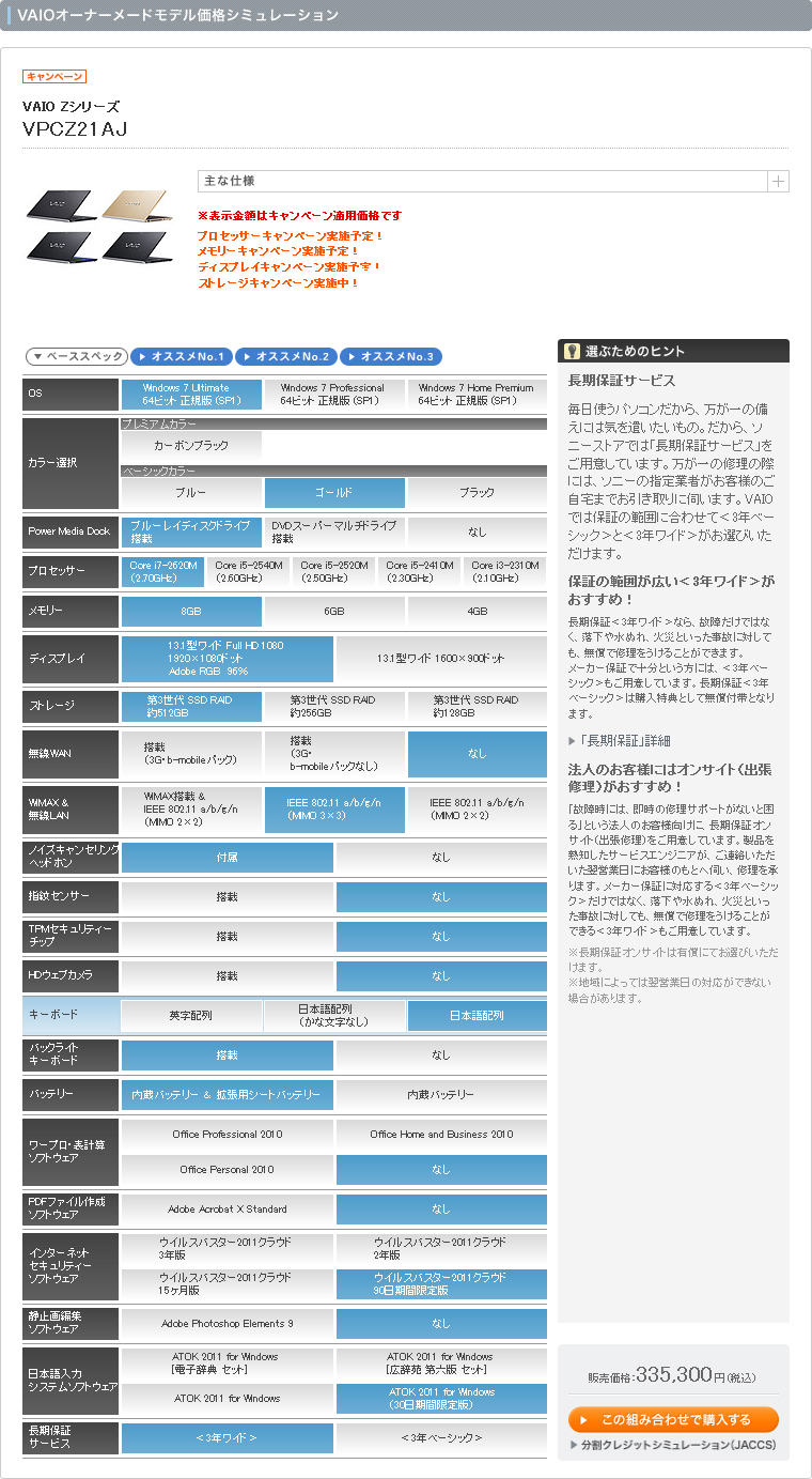 結局こんな買い方で、一歩も妥協せずにいきました。VAIO割引クーポンやらなにやらで、お値段31万円也。