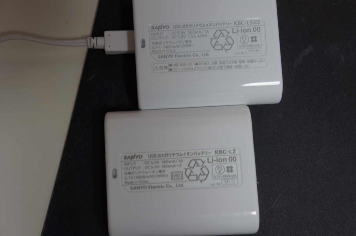 充電ちぅの、上が新型。容量微妙にアップで、出力が1.5Aに(>_<)w 旧型でも一応iPadの充電(要900mA)はいけたけれど、今度のは強そうですw
