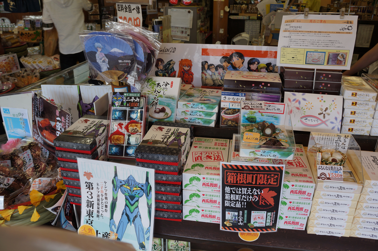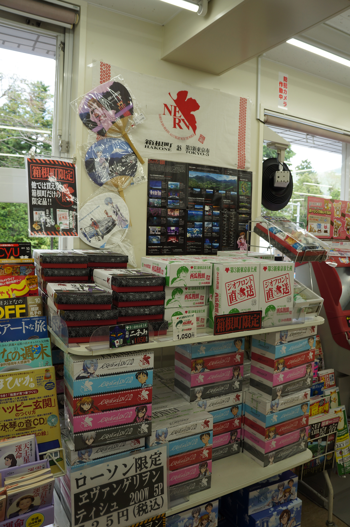 宿近辺のお土産屋さんから、芦ノ湖湖畔設置の自販機、そして仙石原のエヴァローソン店内………相変わらずのエヴァ祭りですw お土産屋のオバチャンまでエヴァ知ってる始末w