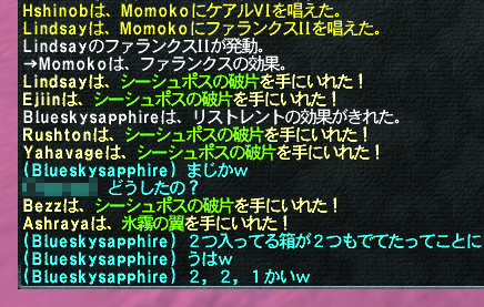 本日の小ネタ。どうやらフェルクリ1発で金箱3つ出て、その中身がしゅぽ2個2個1個だった模様w うはおkwww