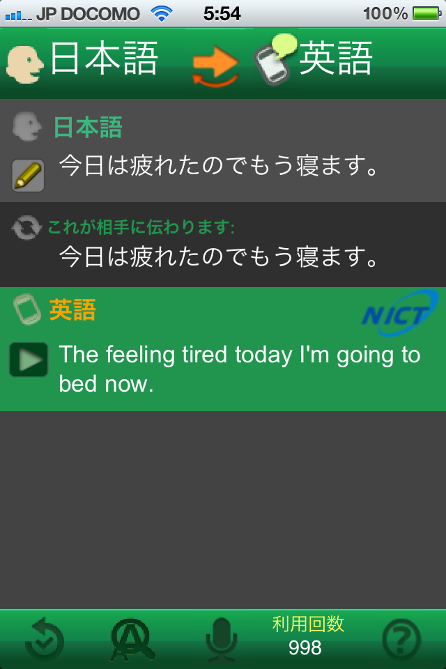 投稿日: 2012/01/16/ 05:55:58 投稿者: にゃんこVoiceTra ヤバい、この無料アプリとんでもねーわ。 テキトーに話しても、完全に音声認識してくれて、きっちり翻訳した上で英語とかで発音までしてくれる……… なんでこんな恐ろしいアプリが無料なのwww FF11に基本実装してくれないかな、このアプリw そしたら無敵じゃね?www