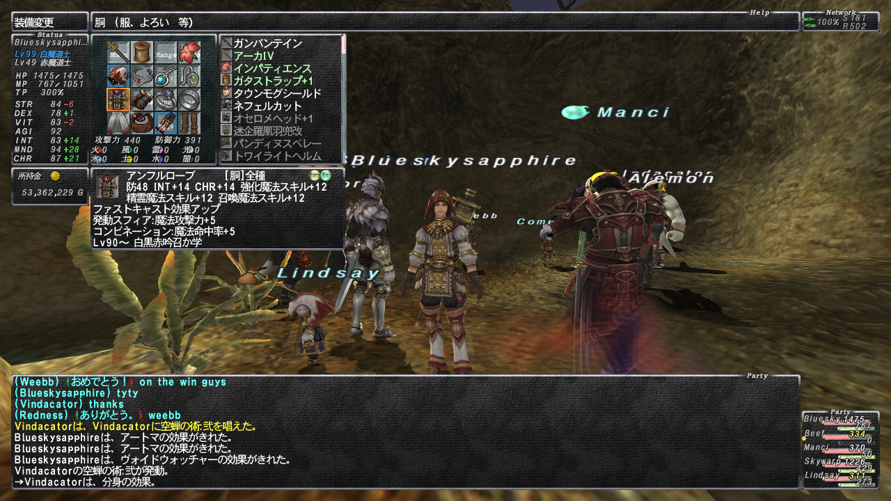 一応ヒクソスローブ+1でも強化魔法500届くしね(>_<) 晴れて+1はLindsayちゃんにお下がりとなりもしたw これでいいのダw