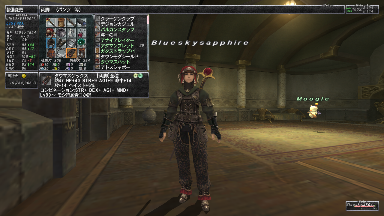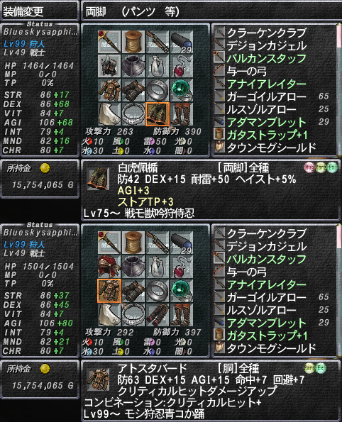 STR,DEX,AGIと、セットボーナスでいずれもいいかんじに上がってます。にやにやw