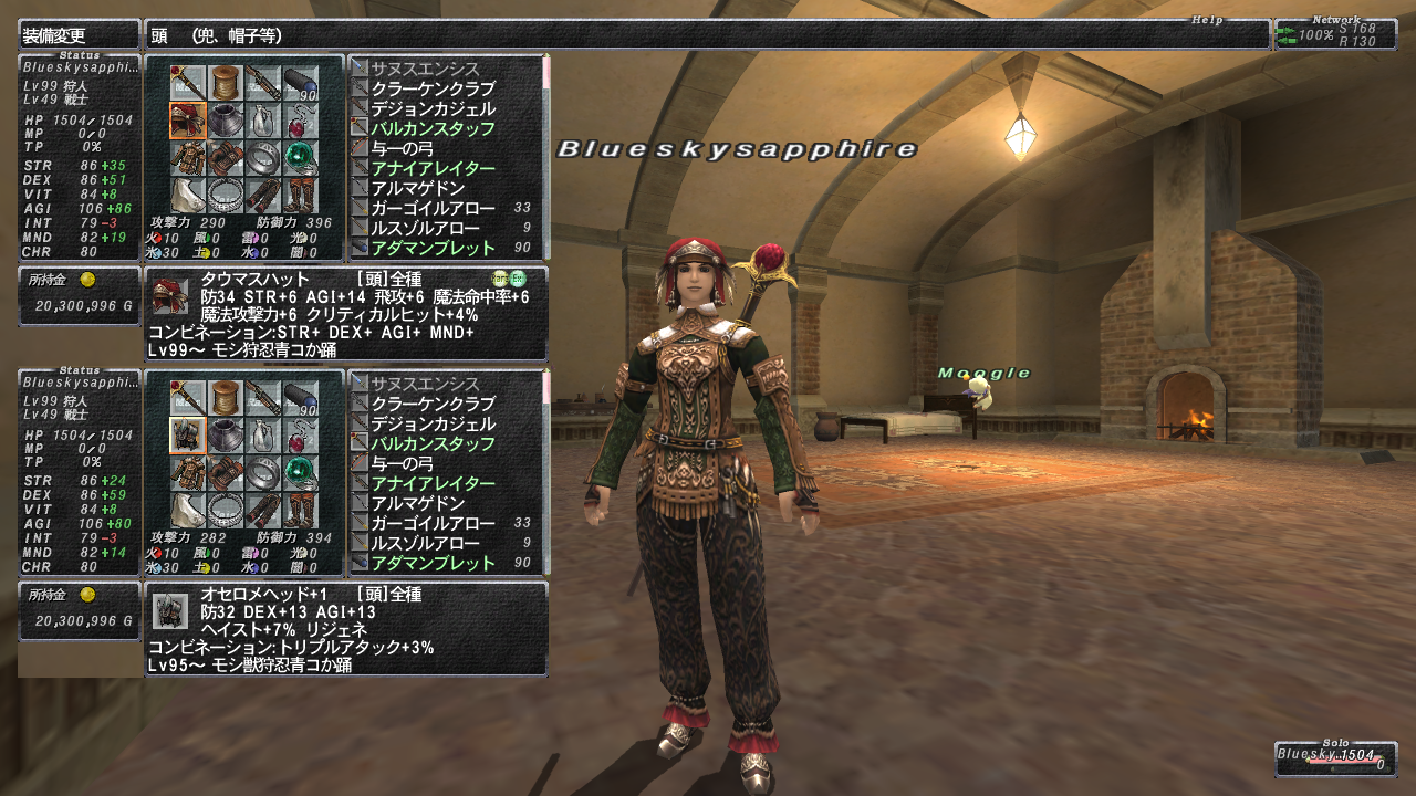 頭はオセロメヘッド+1のほうがいいんじゃないの?って思いますよね。手脚靴と3つ揃っていれば結果はこーなります。オセロメもうイラネwww