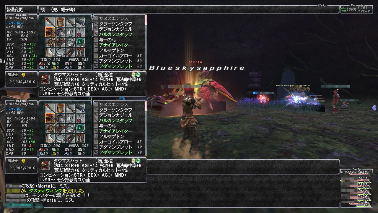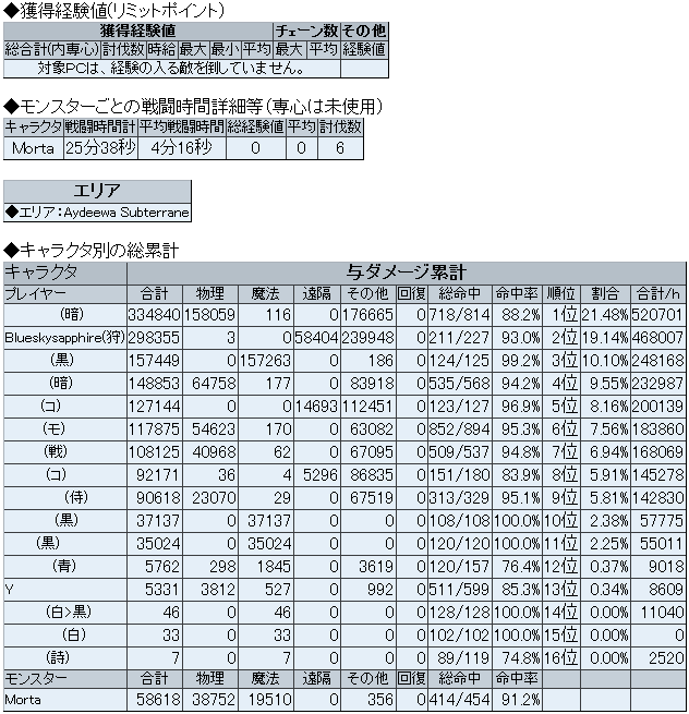 全員のWSダメージの中でもぶっちぎりです、ハイ。普段はここまで無茶出来ないんだけどね………w 今日はタゲ取る心配もなくてよかったw