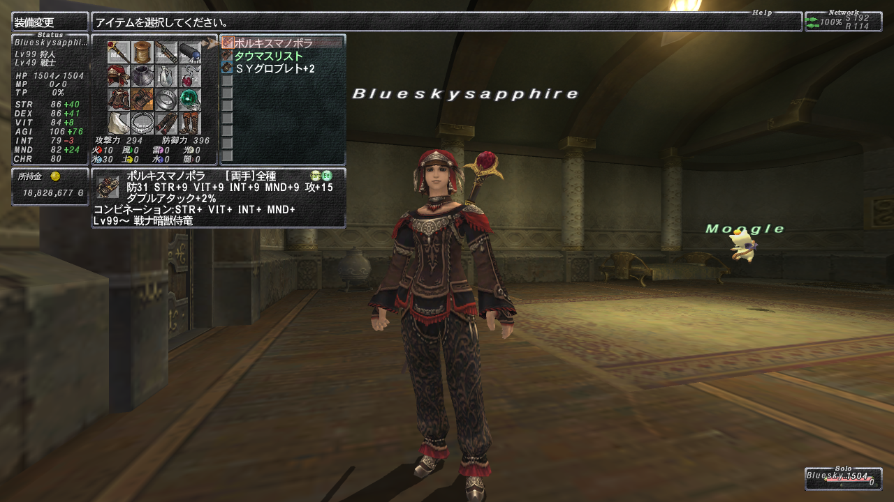 これでタウマス装束コンプリートの、ポルキス装束を1/5持ち。