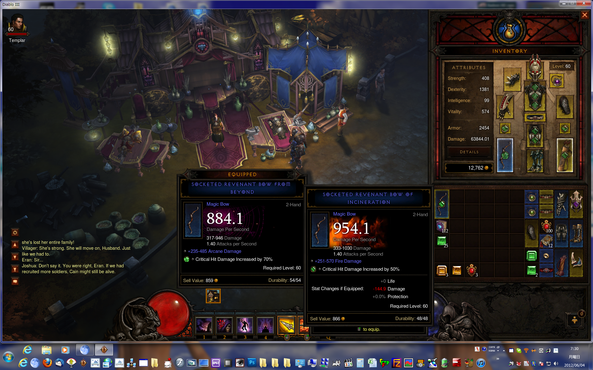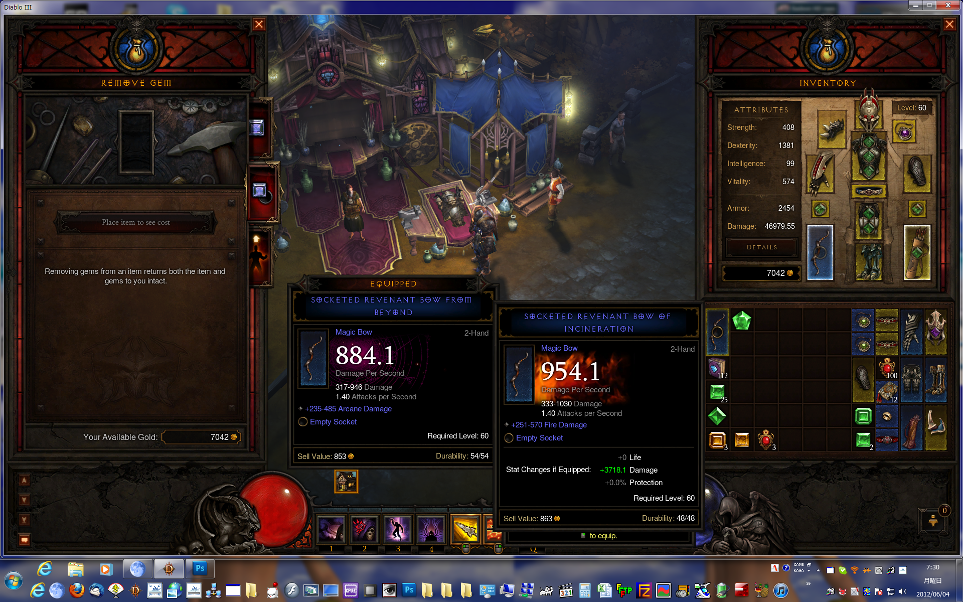 比較にならねーんで、両方の宝石を外してみました。約3700ダメ差かぁ………