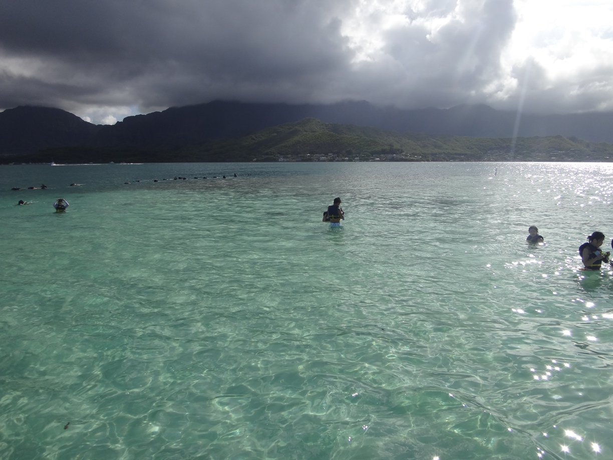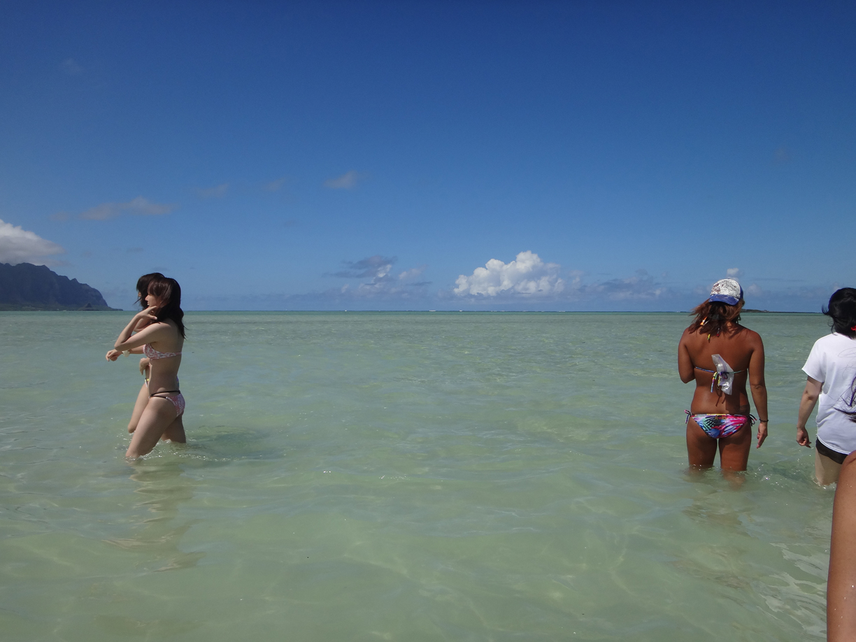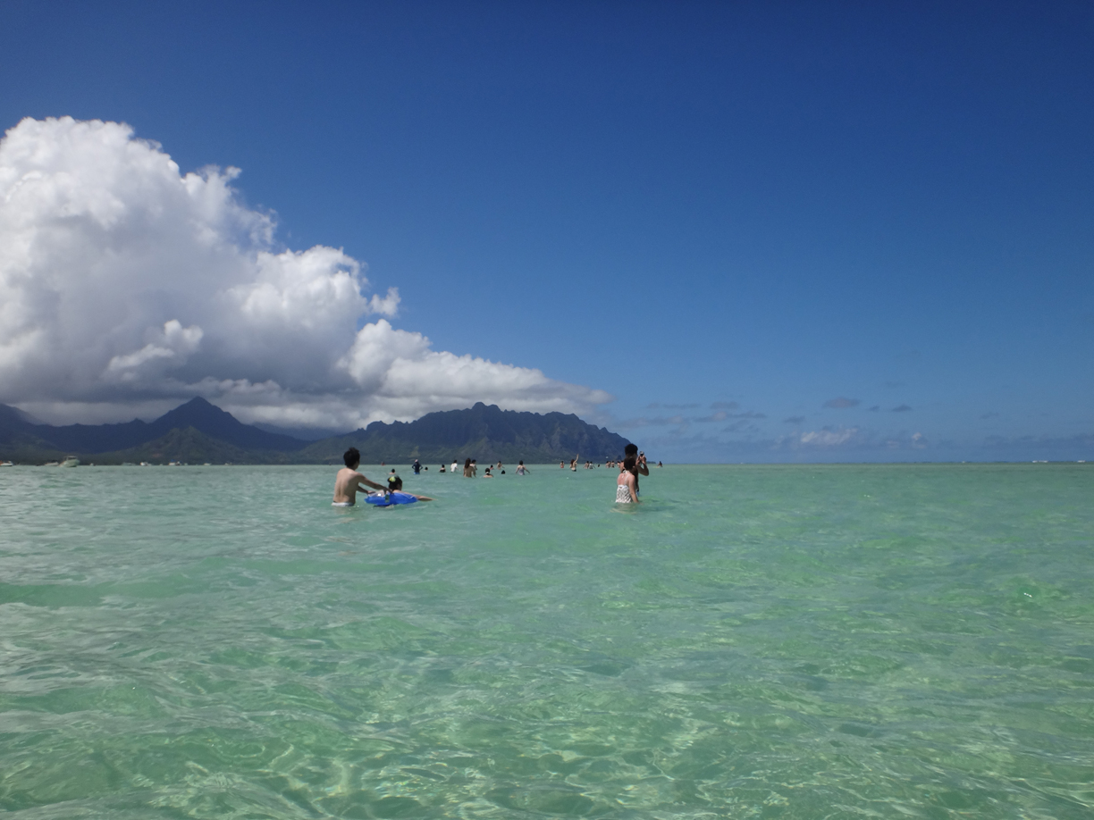 ワイキキから車で30分ほど北東へあがった場所に、天国の海と呼ばれる、遠浅?の海があります。