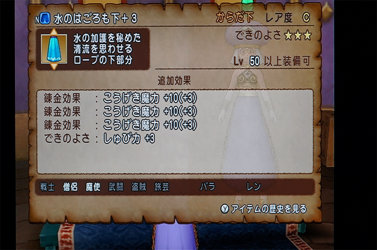 めでたく4回目の完品錬金完成です。やっと水のはごろも上下が+39になりましたw これでもうしんりセットいらないわw(安くなったら作るけどw