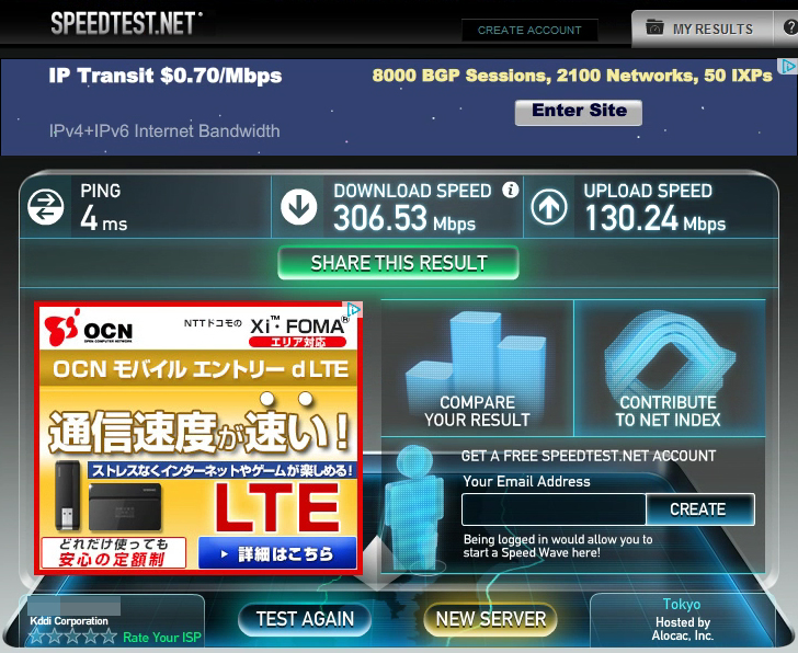 自宅のau光速度。はぇぇ、速すぎる(>_<)w やっぱウチの鯖はサイコーだーぜーw