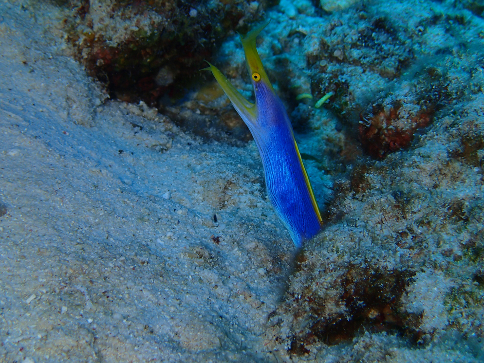 シマシマのはウミヘビが丸くなってお休み中かと思ったら、レアキャラのシマウツボさんだとか。