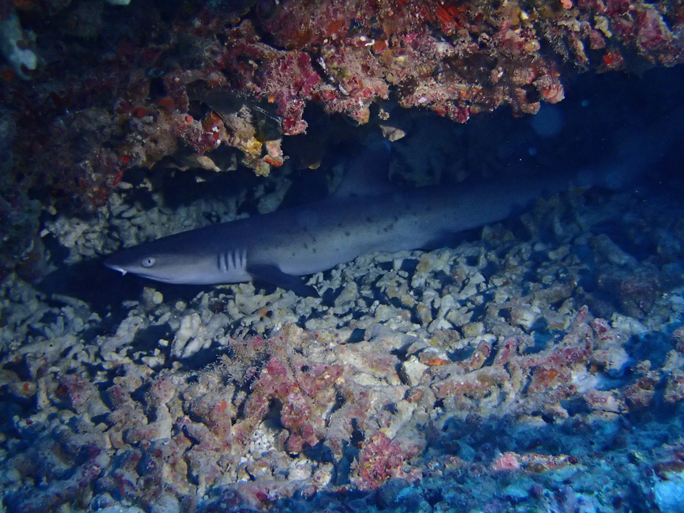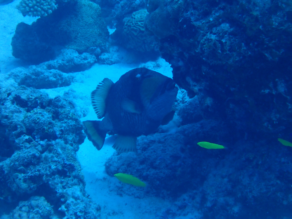 こいつ襲ってくるんですよね(>_<) 船長が頭かまれて5針ぬったとか。数日前にインストラクターの黄色いフィンめがけてまっしぐらでした。