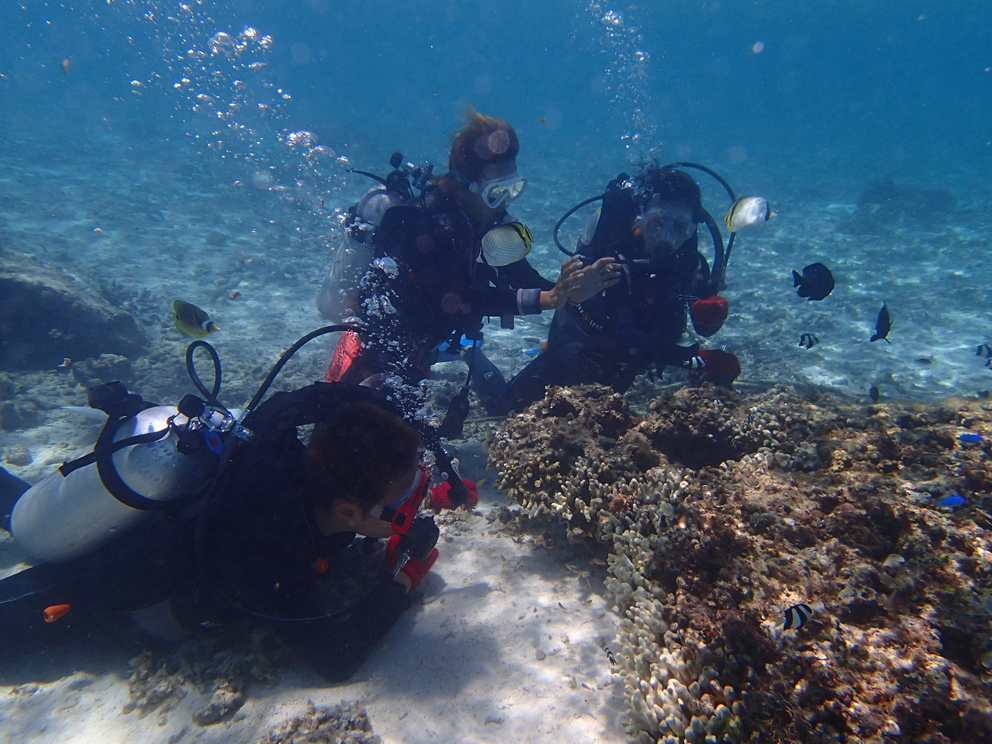 わたし以外絶対にダイビングなんてしないだろうと思っていたのに、同伴者2名に初?シュノーケリングをさせたところ、「潜りたい」というコンボになり