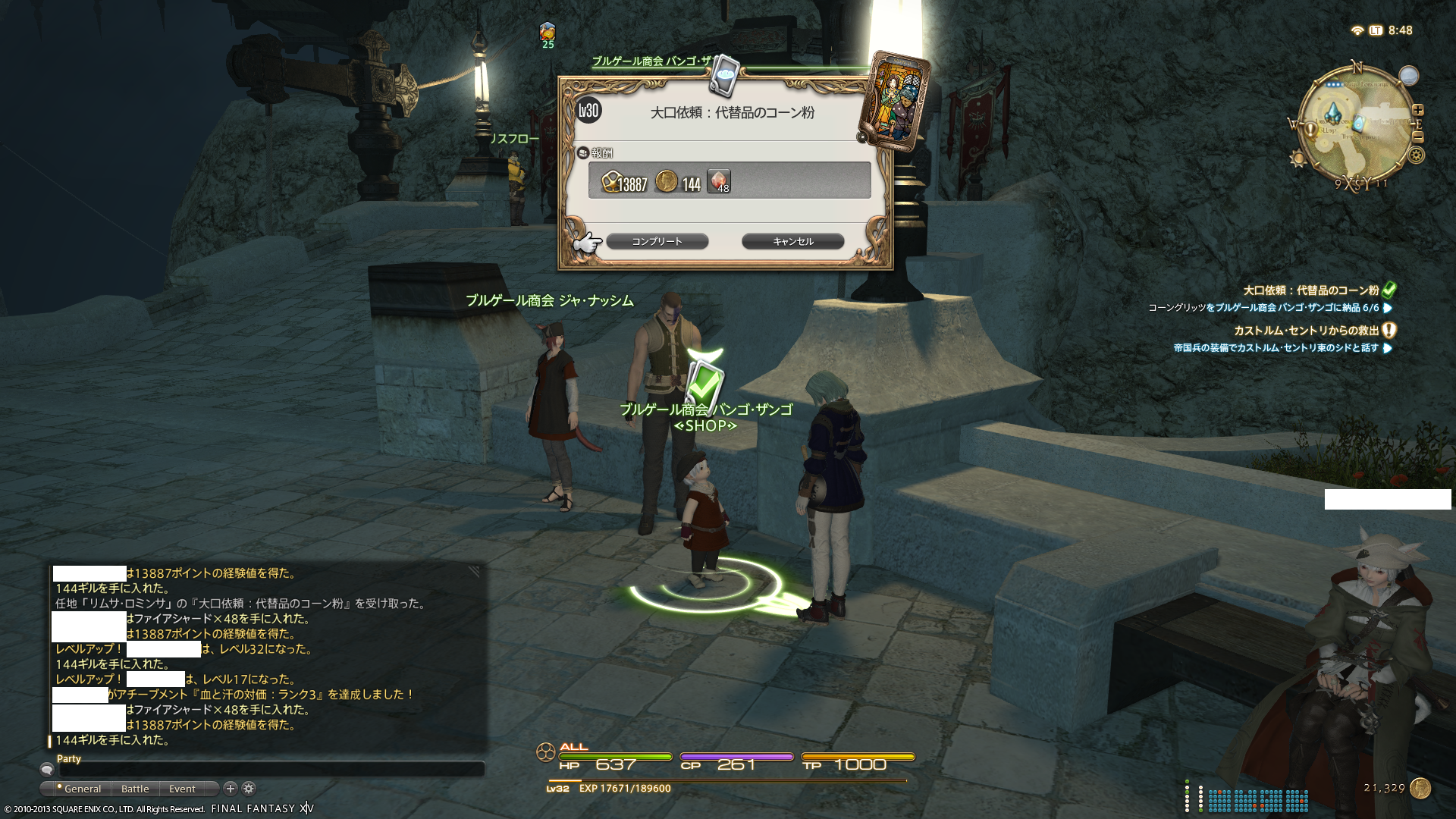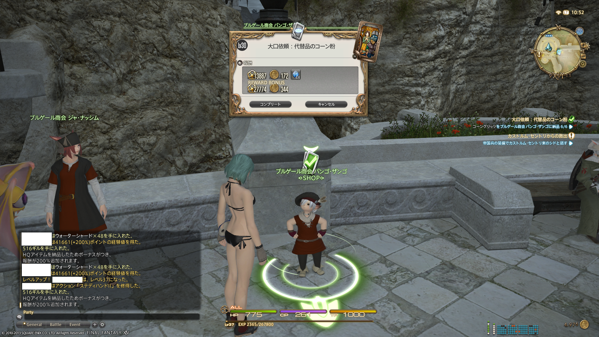HQを収めると経験値200%ボーナスで41,661expのx3で124,983expに(>_<)ノ やべー、ギルドリーヴのチケット貯めといて佳かったw