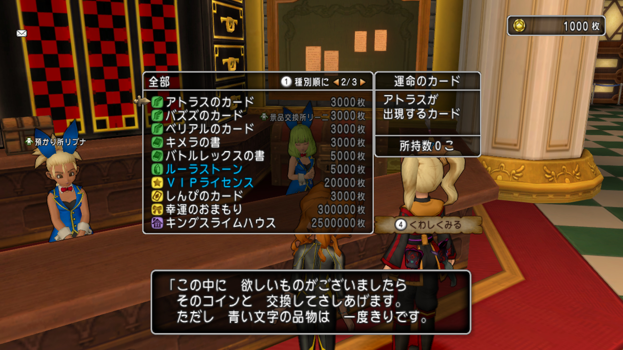 コイン1枚20Gで、両替で入手出来る枚数に上限が決められてて1000枚しか交換させてくれない不具合………たったの20000Gだと!?orz