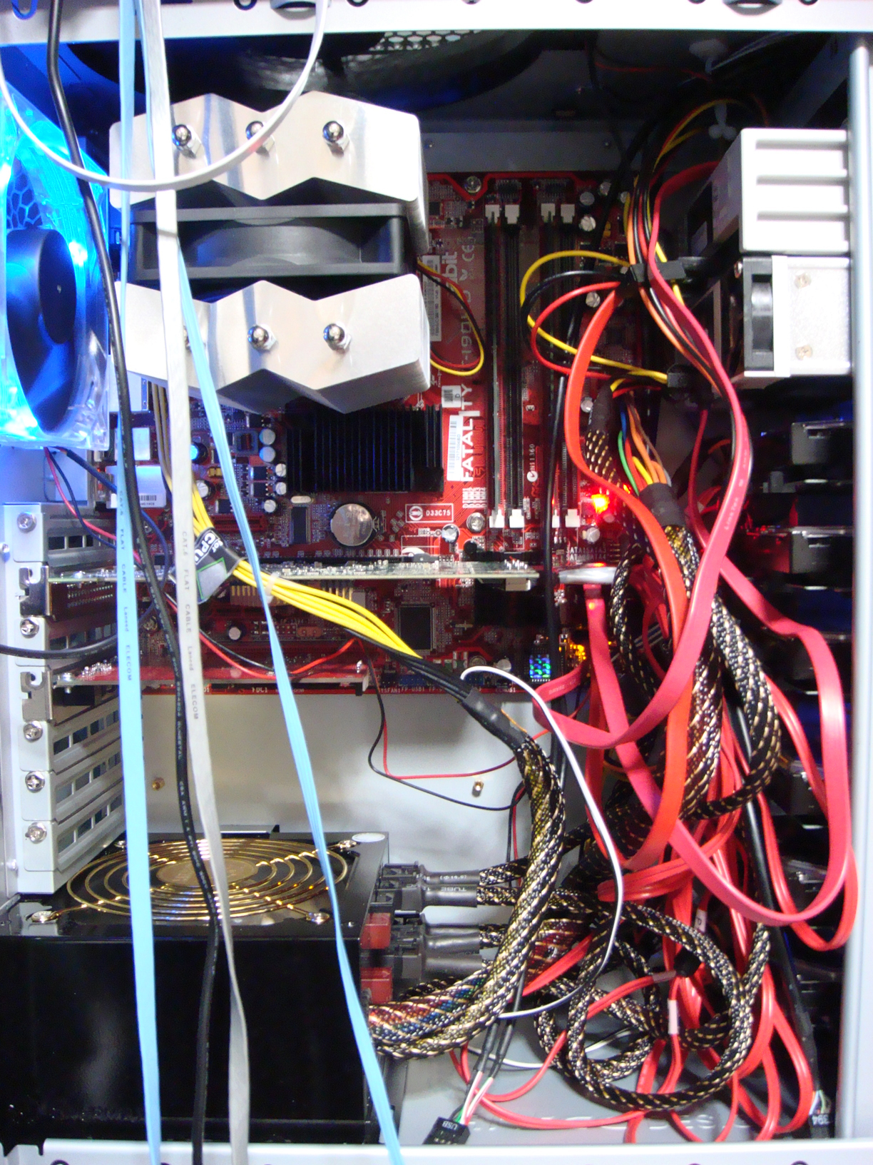 で、常時電源入ってるHDDが存在しないと不便すぎるんで、キャプチャ用に作ったマシンを結局ファイルサーバーに発展させますた。320GBx6はそっくり移植して、RAID5環境の1.6TBドライブ作成。玄人志向のガワに組み込んでたHDDに存在していたデータは全部移動させました。