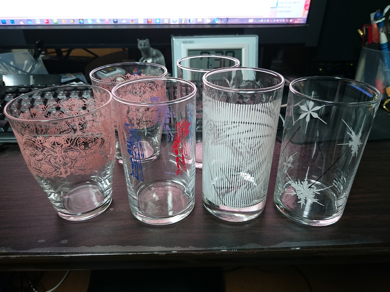 コップ類は、一番地味と思われた氷の結晶図柄が一番使い勝手良さそう。