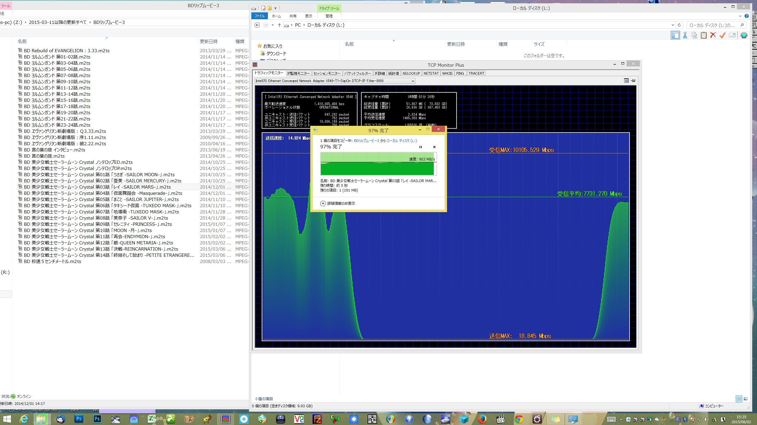 NIC速度のスペックいっぱいいっぱいまできっちり出てますネ(>_<)w 転送速度900MB/sとかクソやべえwww 今までの9倍の速度を手に入れたっ(>_<)ノw