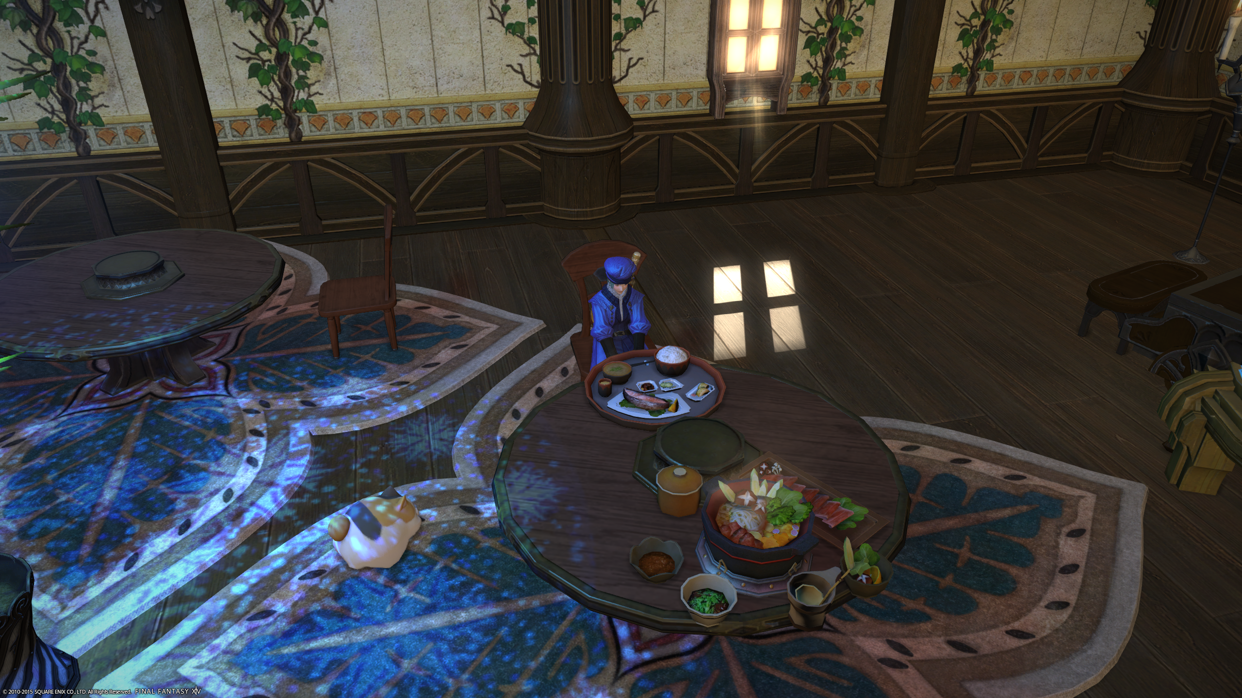 投稿日: 2015/06/24/ 04:13:27 投稿者: にゃんこイシュガルド来ましたねぇ 調理と彫金だけとりあえずLv60にしてみた(>_<) んで、オリエンタルモーニングセット&ディナーセットをハウスに設置してみる、の図。 和食朝ご飯と、お鍋キター(>_<)w