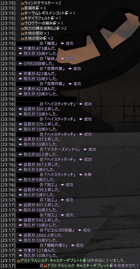 ヘイスティ(突貫失敗時、突貫に置き換えor高品質か虹のとき、集中加工に置き換え)