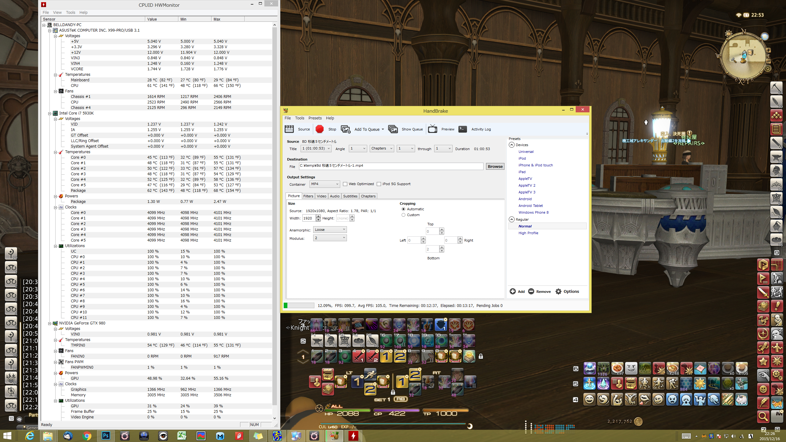 FF14を二重起動させながら、強引にブルーレイエンコードしてみたり。