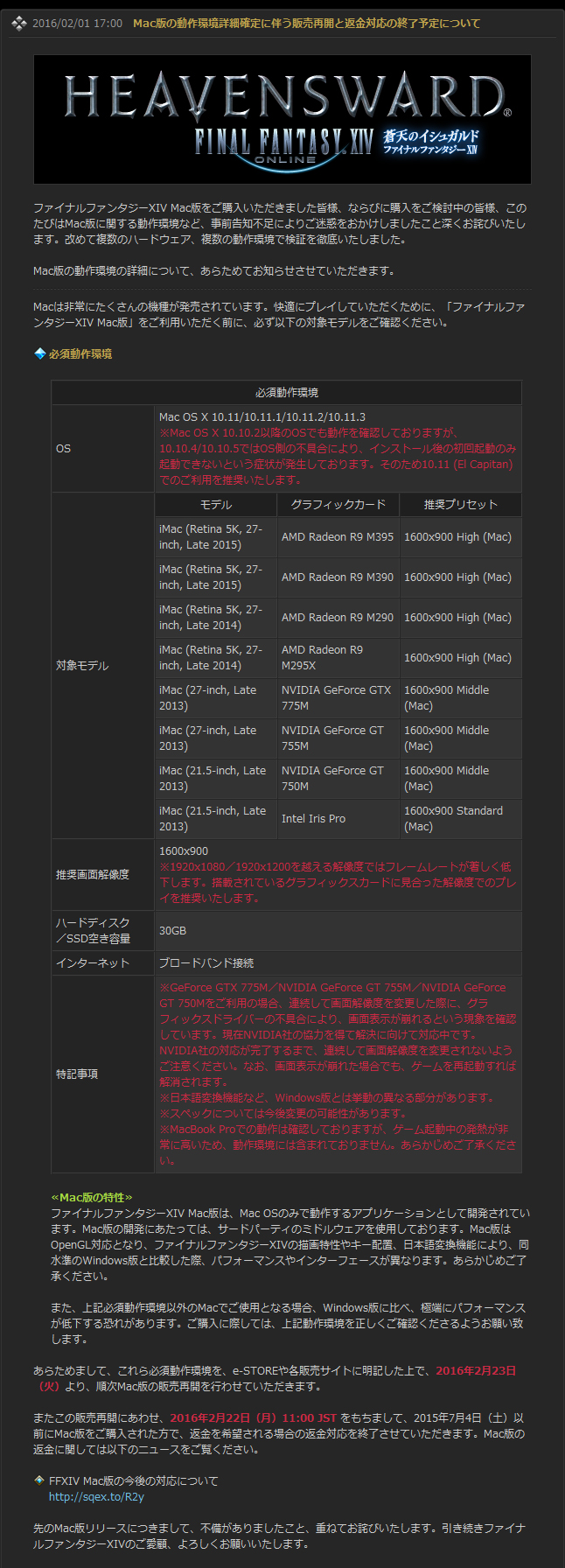 Macの標準装備程度のグラフィックスペックでFF14なんて満足に動くわけないんだ。しかも5Kとか無謀すぎ(>_<)