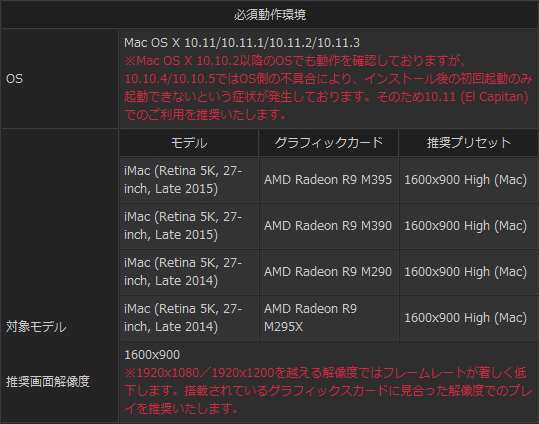 マックのくせにPS4以下のスペックでしか動かないとかダサすぎるわw